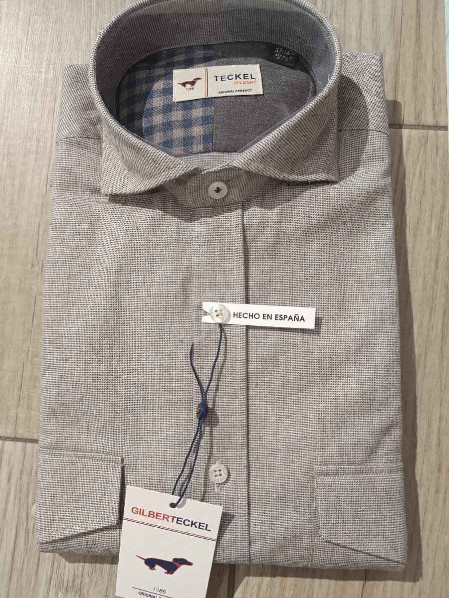 Camisa manga larga lisa de la marca Gilbert Teckel en color marrón. Hecho en España.