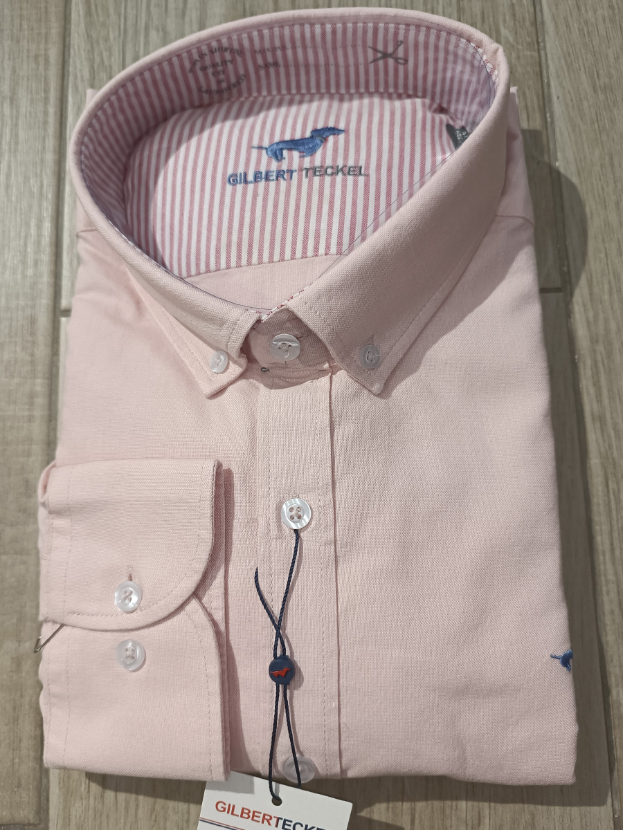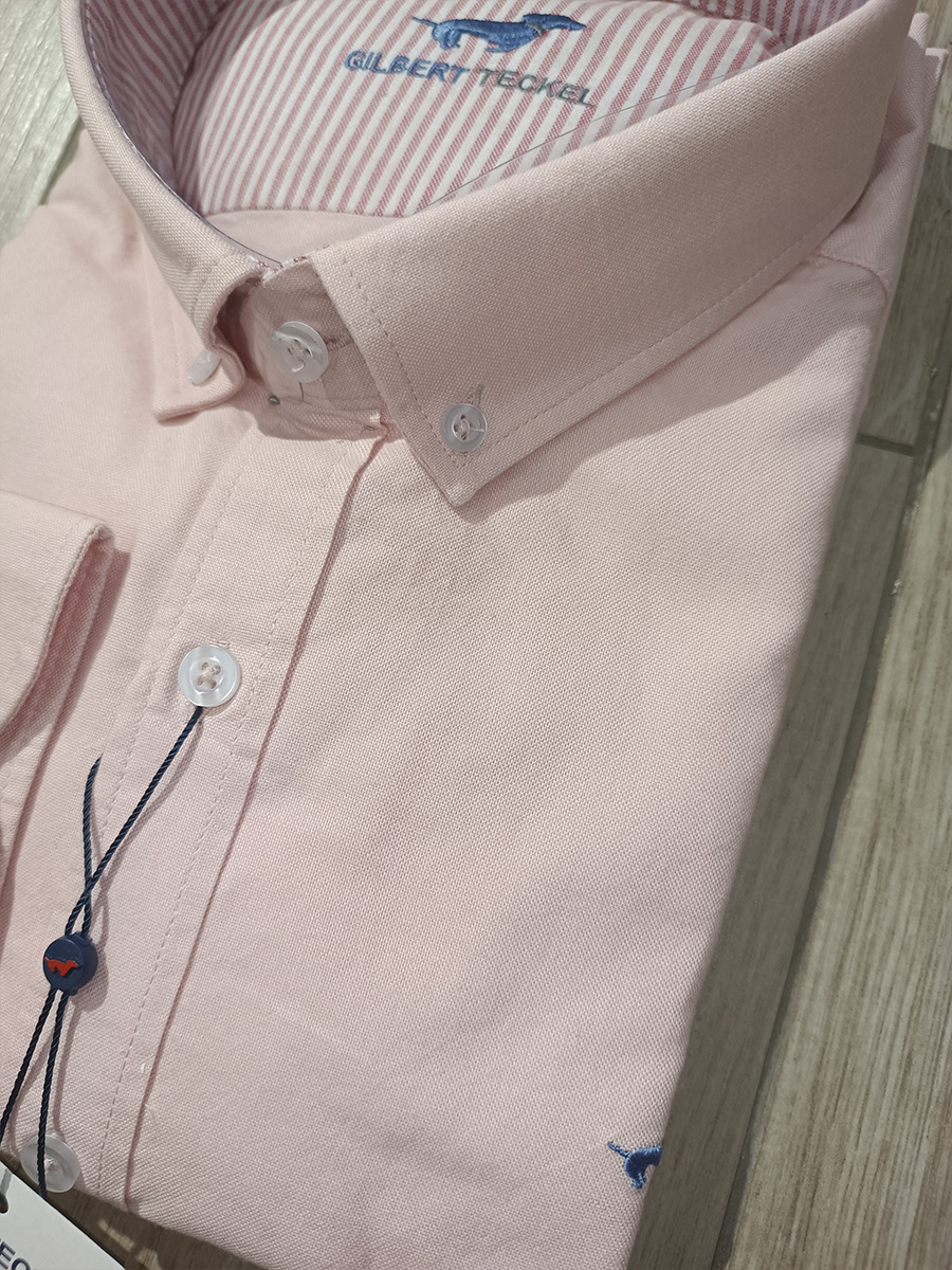 Camisa manga larga lisa en color rosa de la marca Gilbert Teckel. Hecho en España.