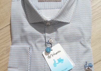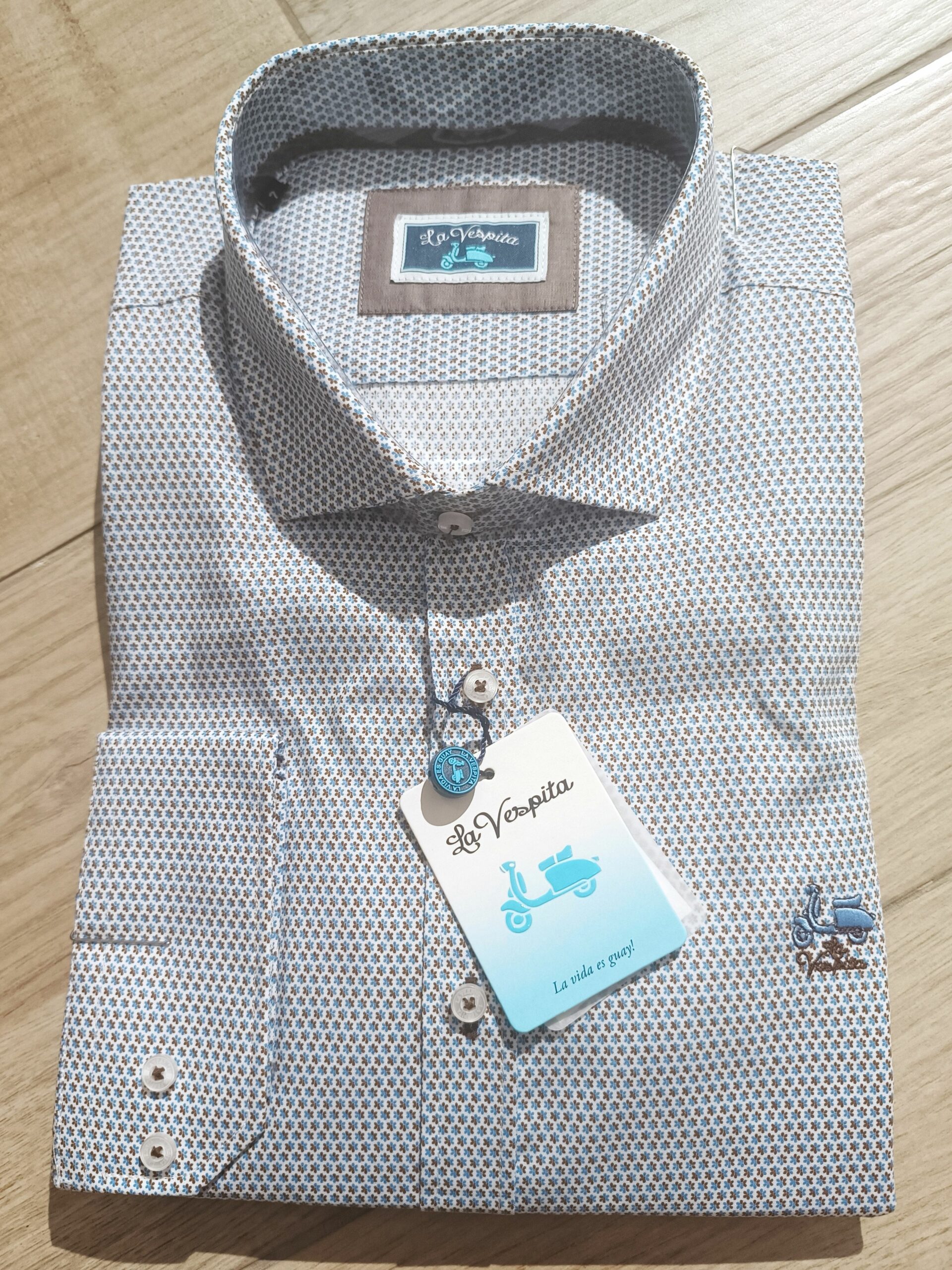 Camisa manga larga de la marca La Vespita con estampado multicolor. Hecho en España.