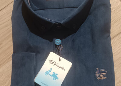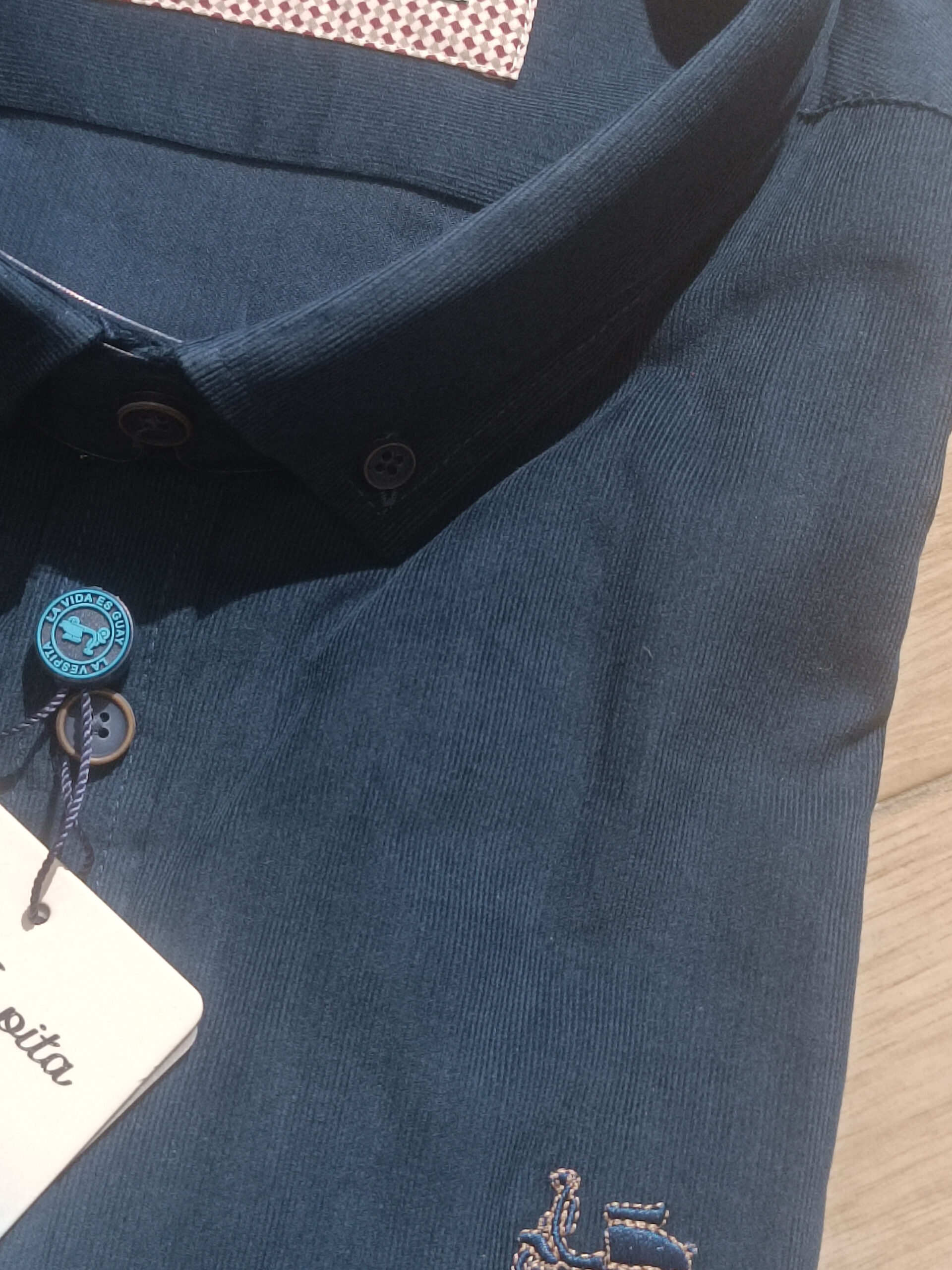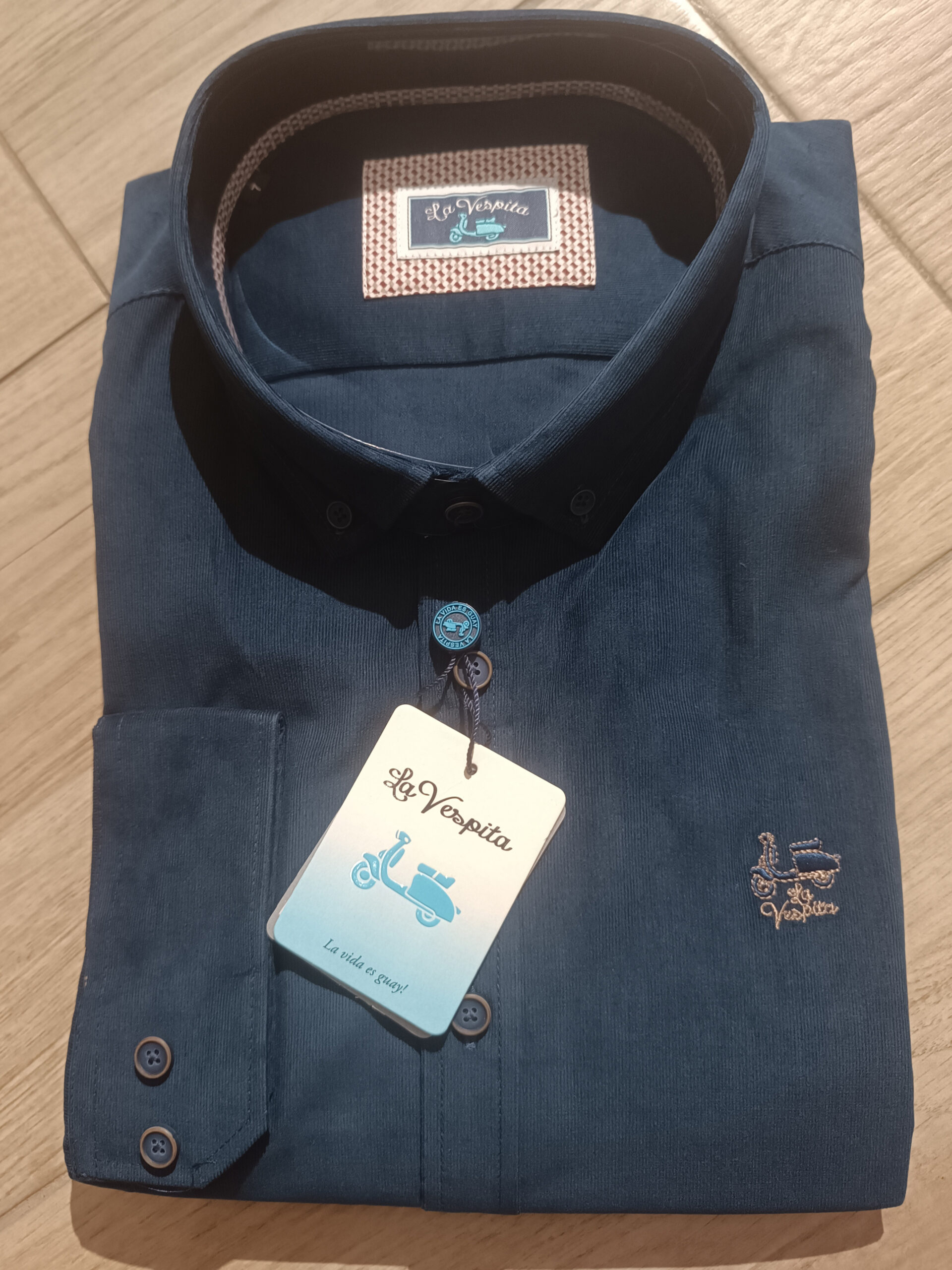 Camisa de la marca La Vespita lisa en color marino y con logo de la marca en el pecho. Textura pana. Está confeccionada con 100% algodón.