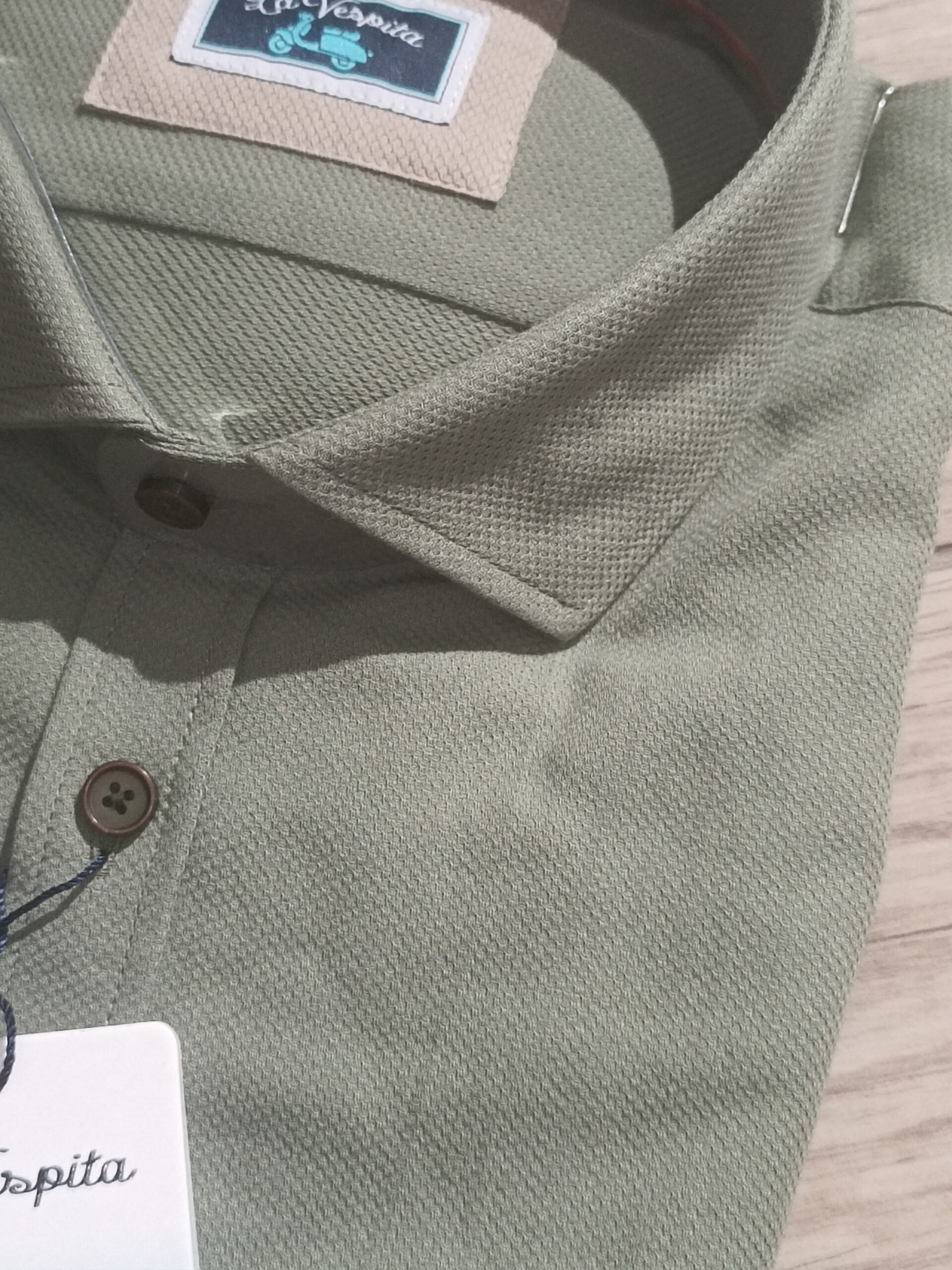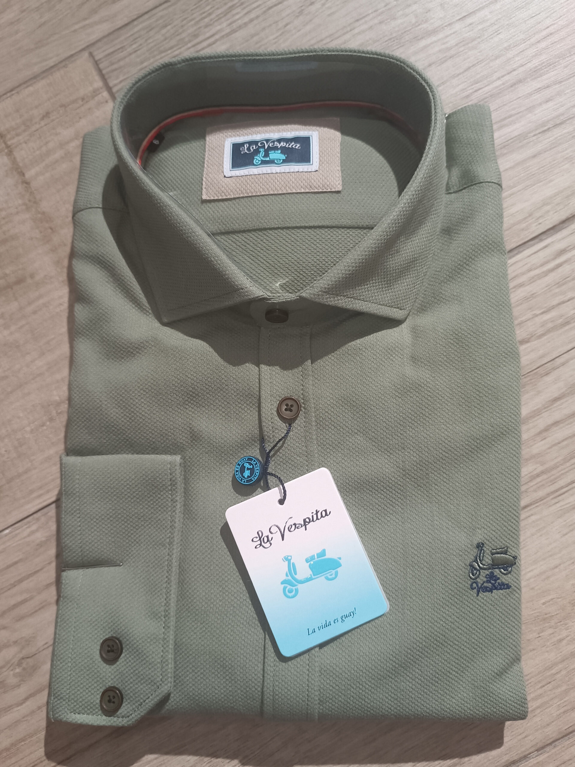 Camisa manga larga de la marca La Vespita en color verde. Hecho en España.