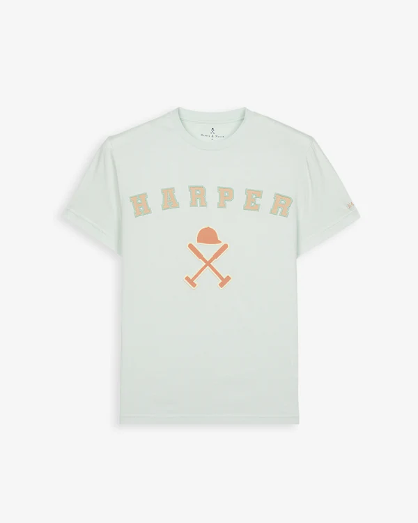 Camiseta Retro de la marca Harper and Neyer en color turquesa. Regular fit. Cuello redondo y manga corta. Estampado frontal con logo y letras a contraste. Confeccionada con 100% algodón.