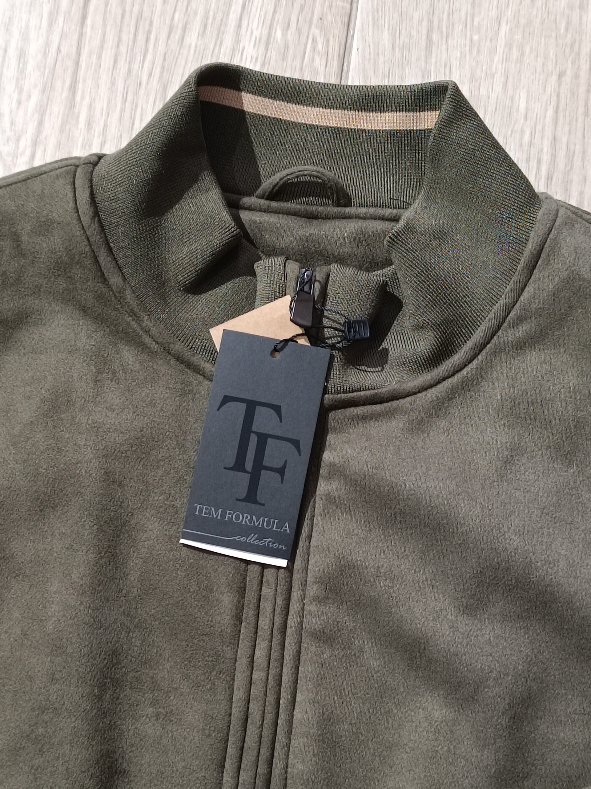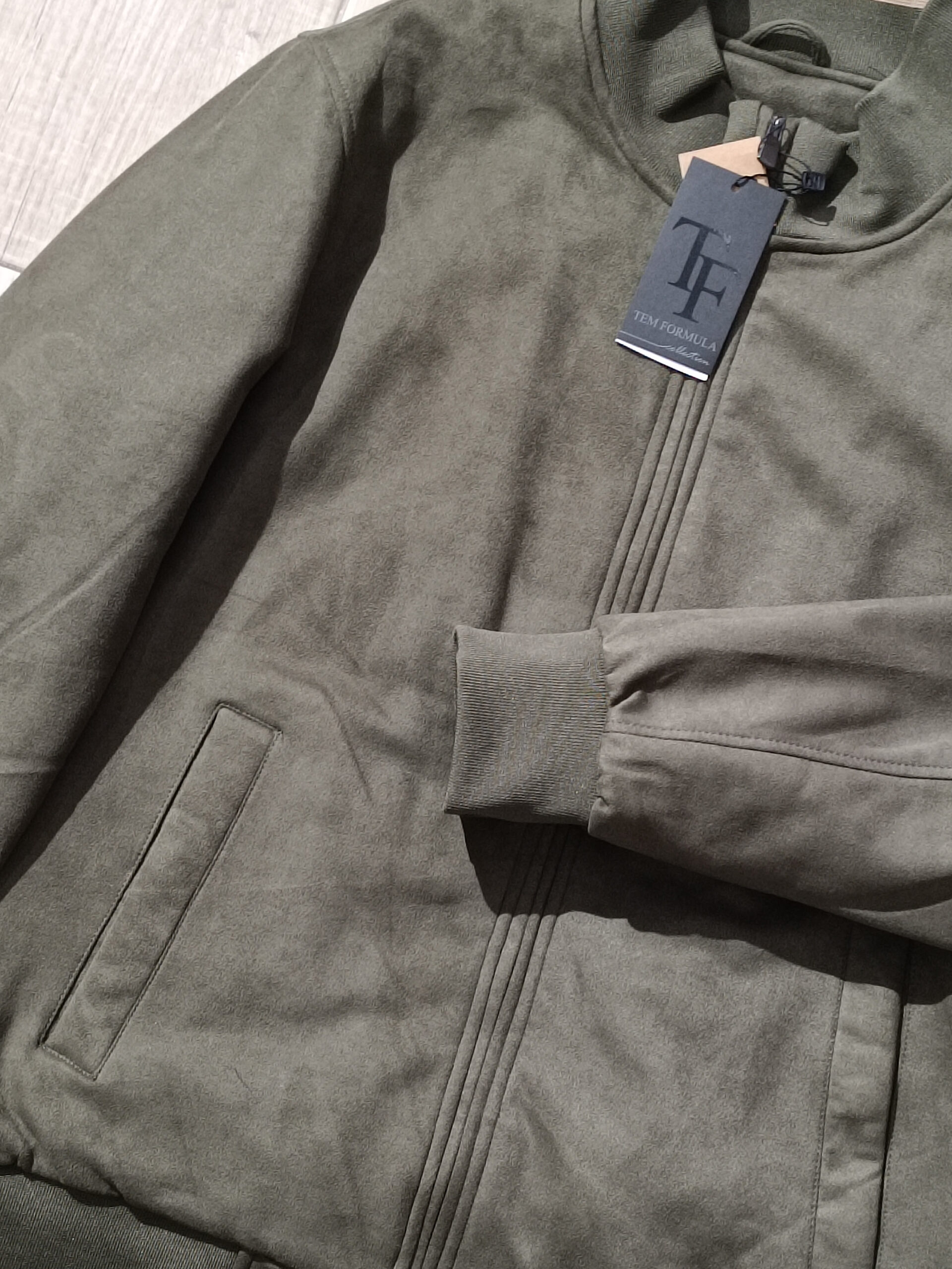 Chaqueta de ante de la marca Tem Formula en color caqui. Finaz acolchada y con tejido suave. Bolsillo interior. Sin capucha. Hecho en España.