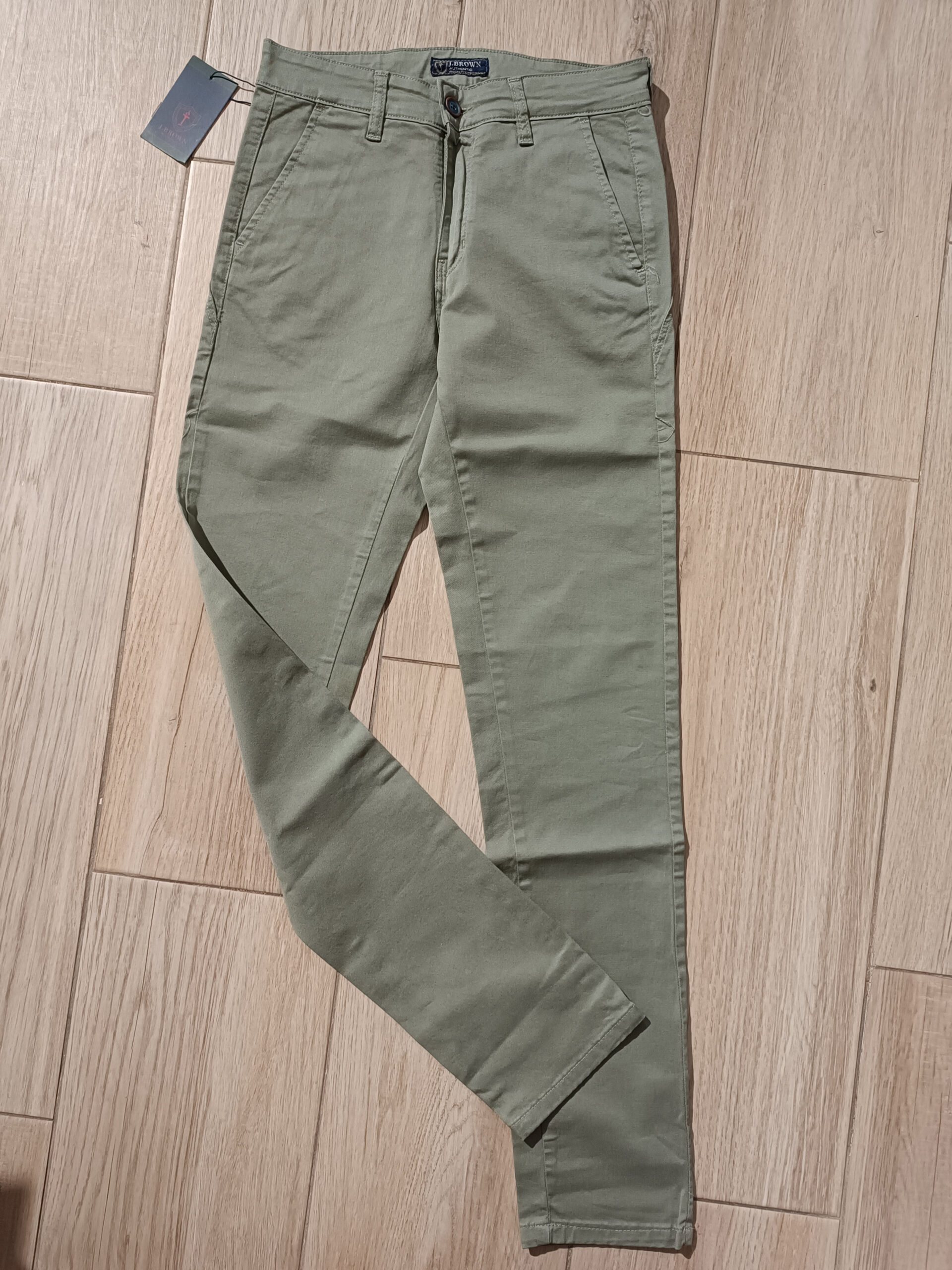 Pantalón tipo chino slim fit de la marca J Brown en color caqui. Confeccionado con un 97% de algodón y un 3% de elastano.